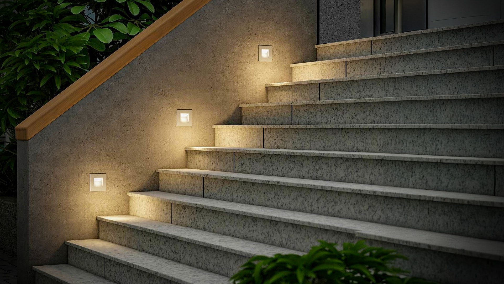 Discreet, recessed wall lighting for hallways, stairs, and ambient accent lighting.